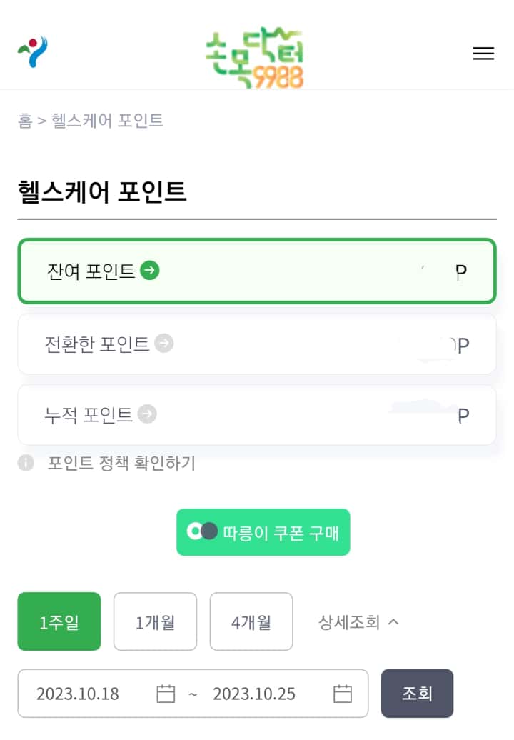 그러면 비로소 손목닥터 9988 포인트로 따릉이 쿠폰을 구입하는 페이지가 나옵니다.