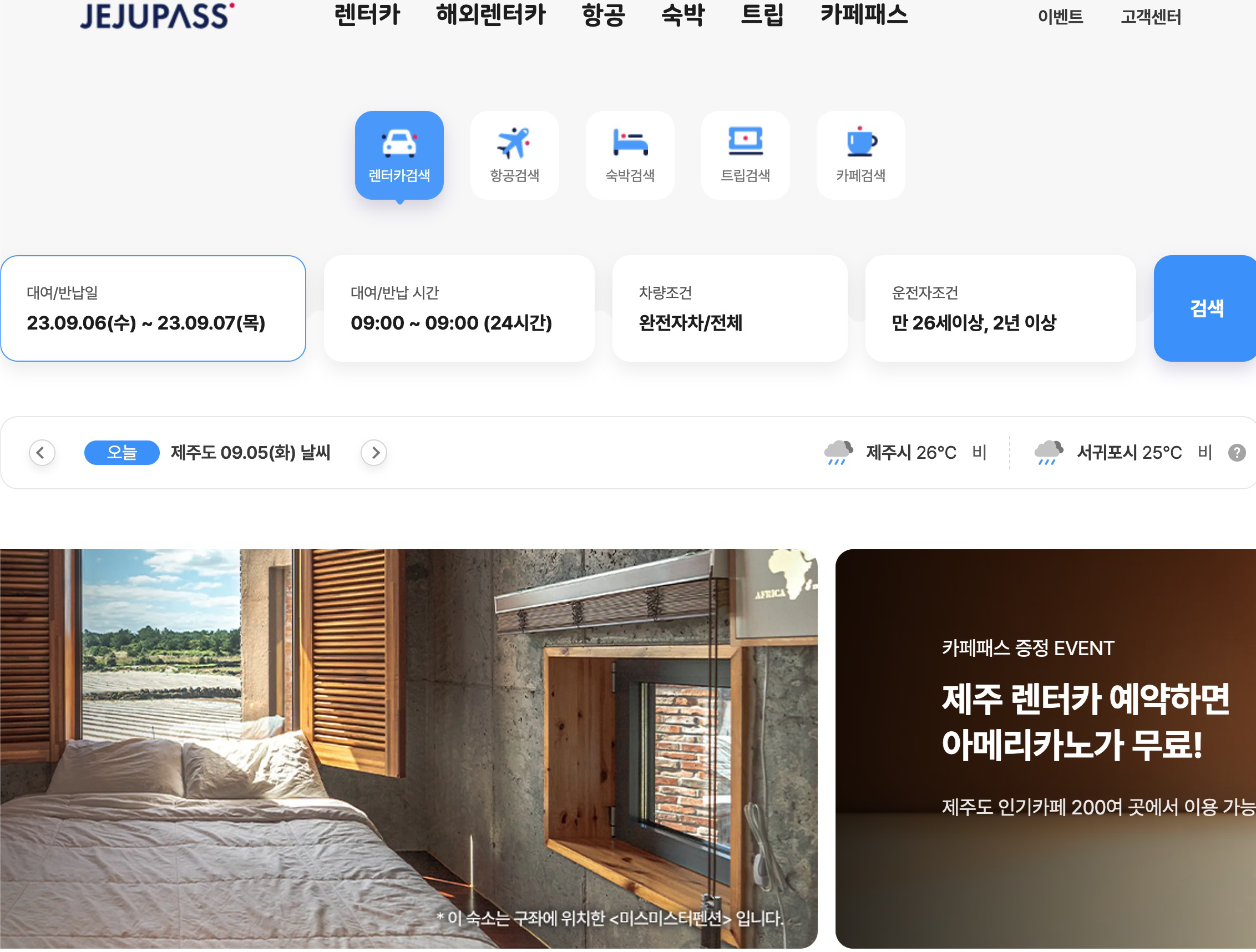 저는 코로나 시절때부터 이용해 오고 있는 '제주패스'라는 사이트에서 렌터카를 검색해오고 있는데, 가격이 저렴한 것도 저렴한 것인데, 메뉴와 계약이 제 기준에서는 계약하기 편리한 사이트라 계속 이용하고 있습니다.