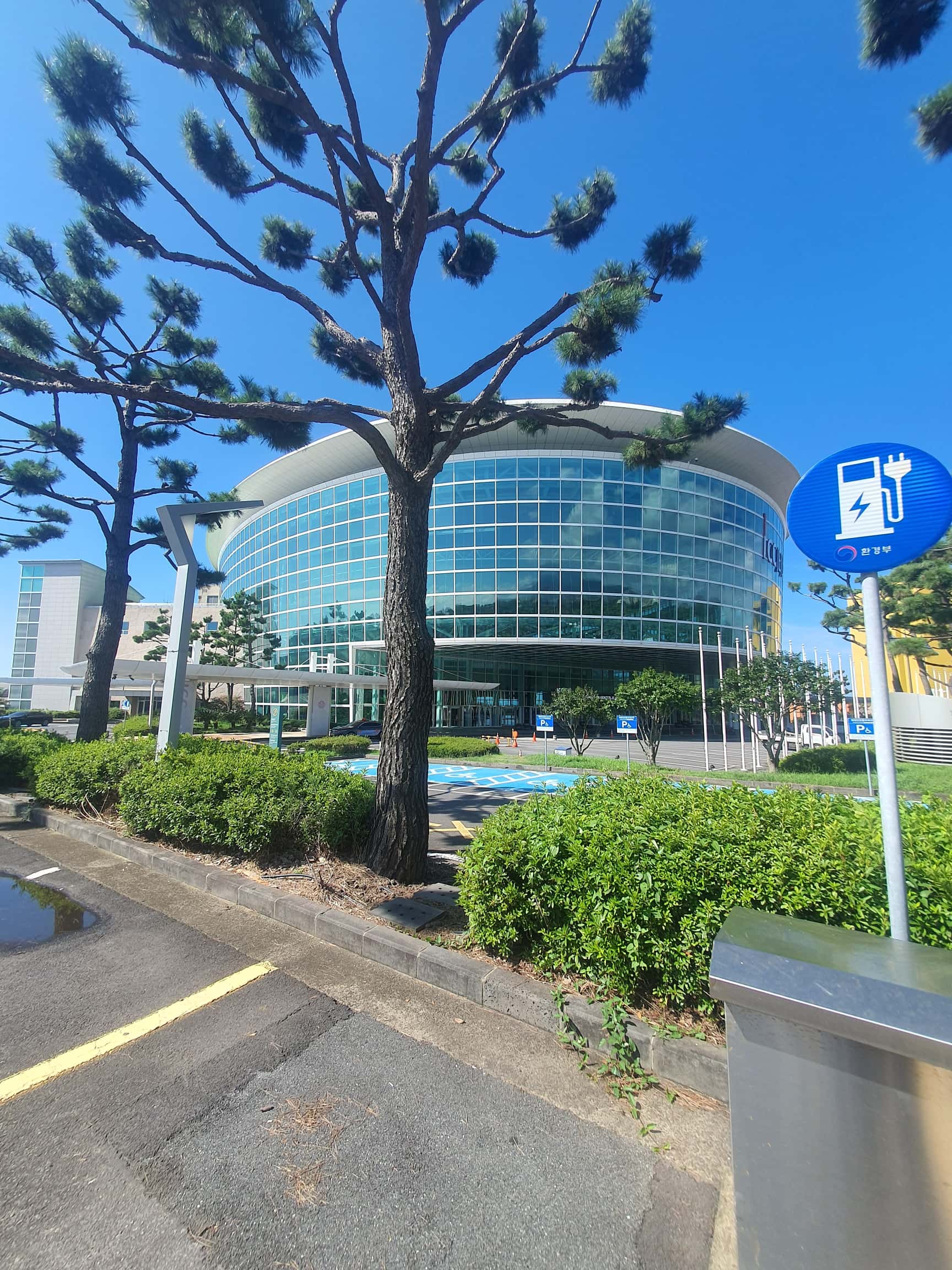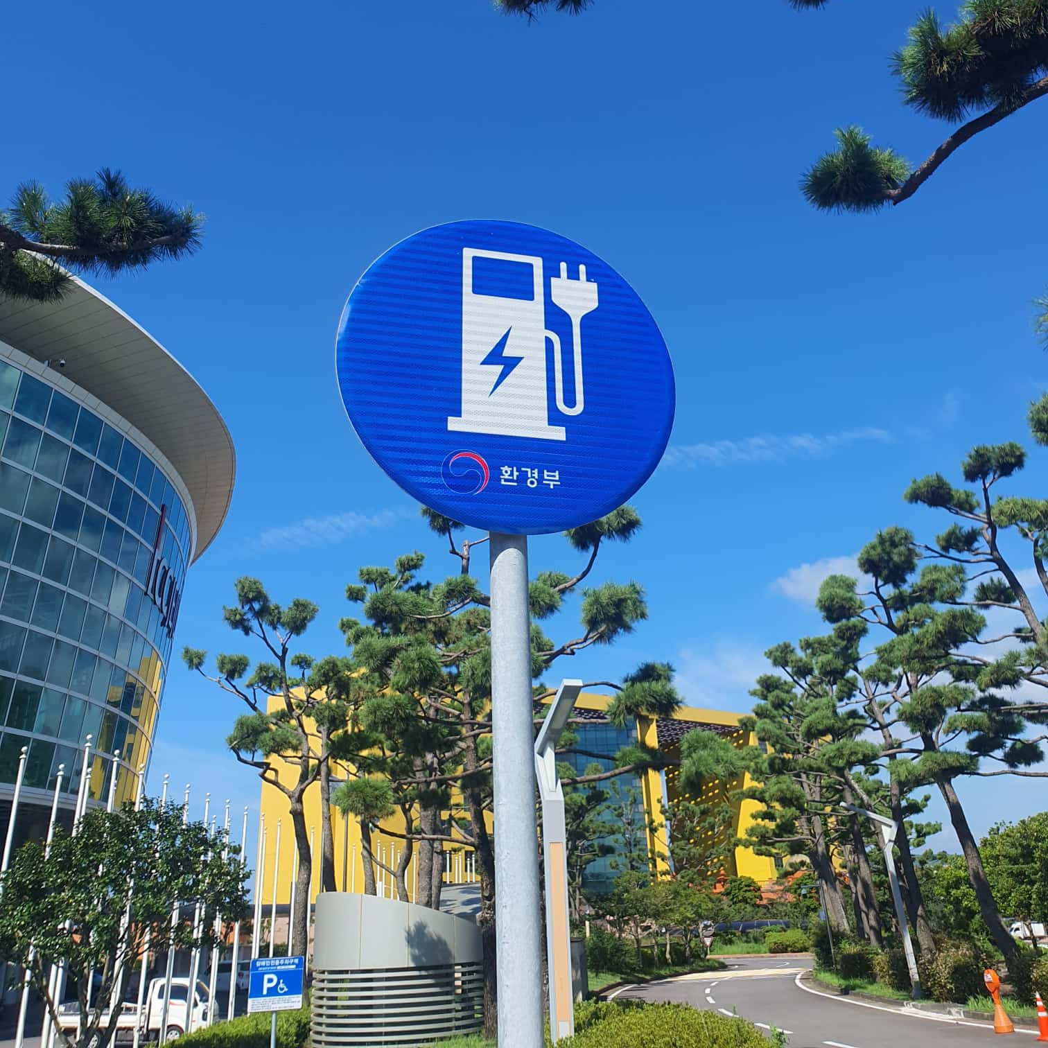 이런식의 사설 회원제 충전소가 있었습니다. 당황했던 저는 뒤를 돌아보니 제주관광공사의 제주컨벤션센터가 있었고, 그 곳에 꽤 큰 전기차 충전소가 있었습니다. 그런데 급한 마음에 시야가 좁아질 대로 좁아진 저는 이 마크만 보고 옥외에 있는 전기차 충전소에 차를 들이대었지요.