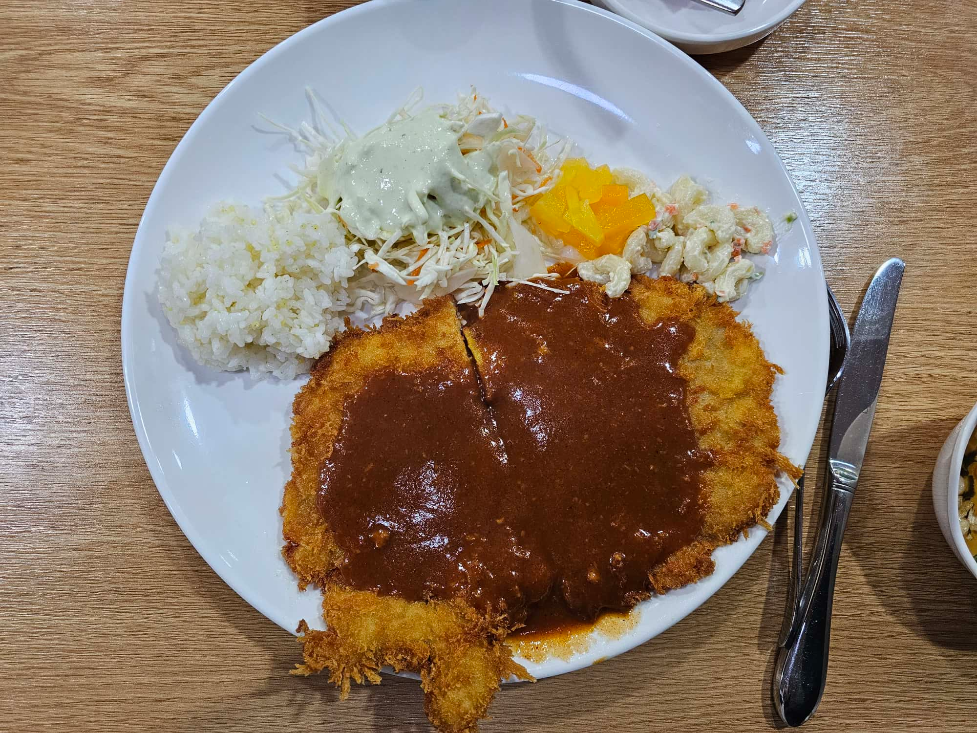 - 돈까스를 잘 두들겨 잘 펴서 튀긴 느낌이 든다. 두께가 얇고 고르다.