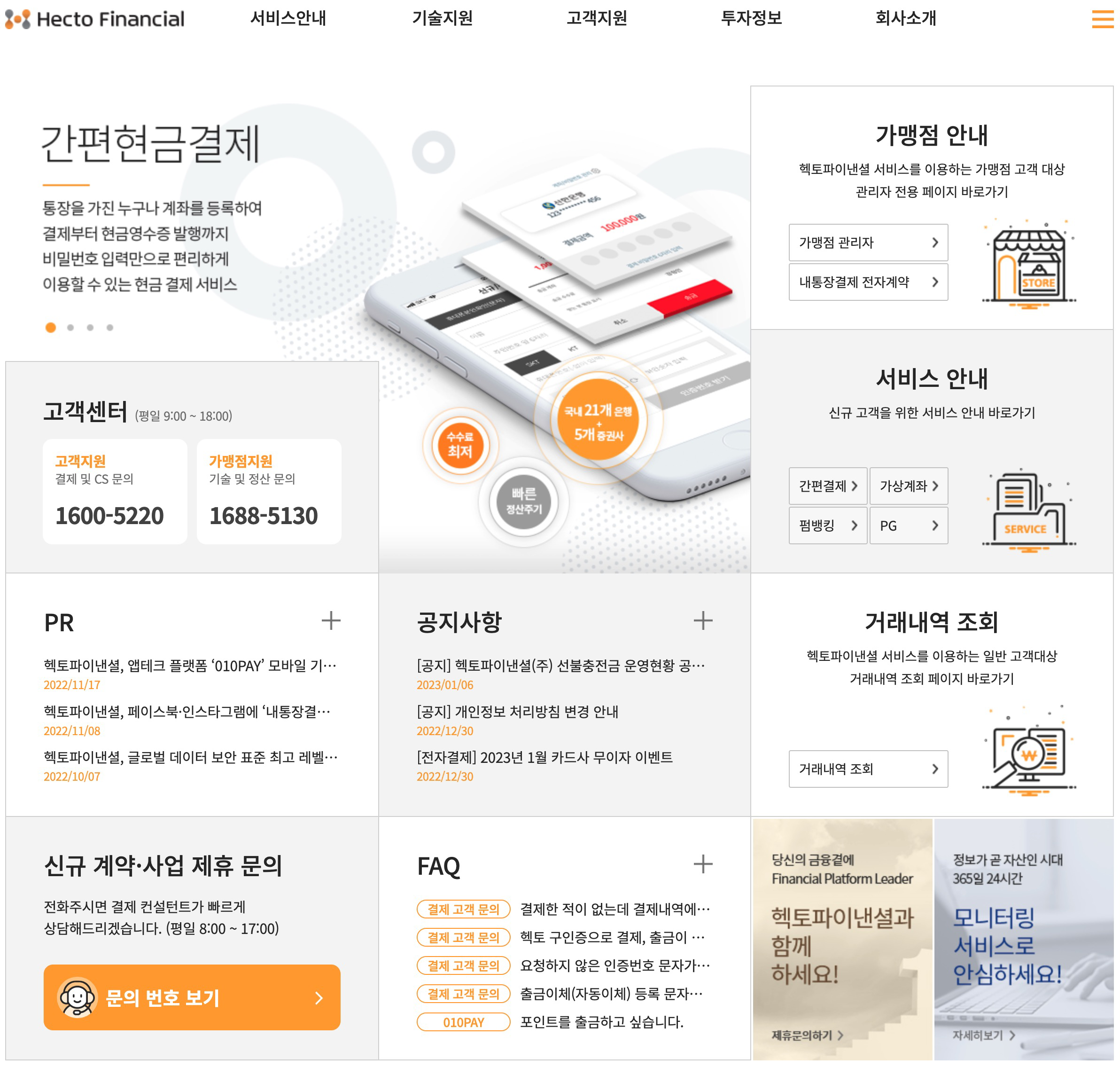 헥토파이낸셜 홈페이지 https://www.hectofinancial.co.kr/main